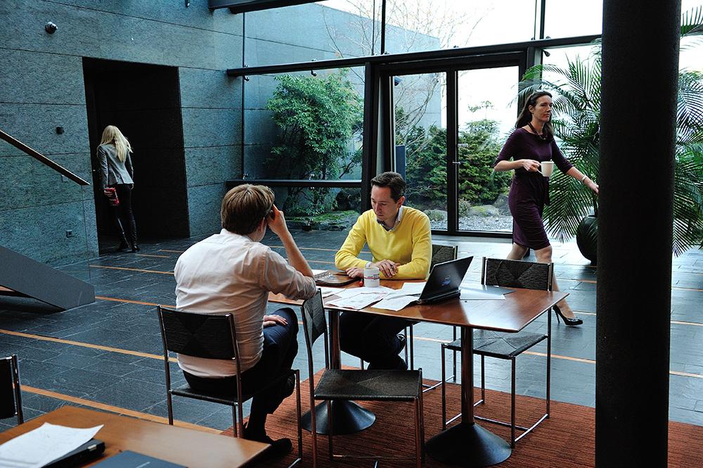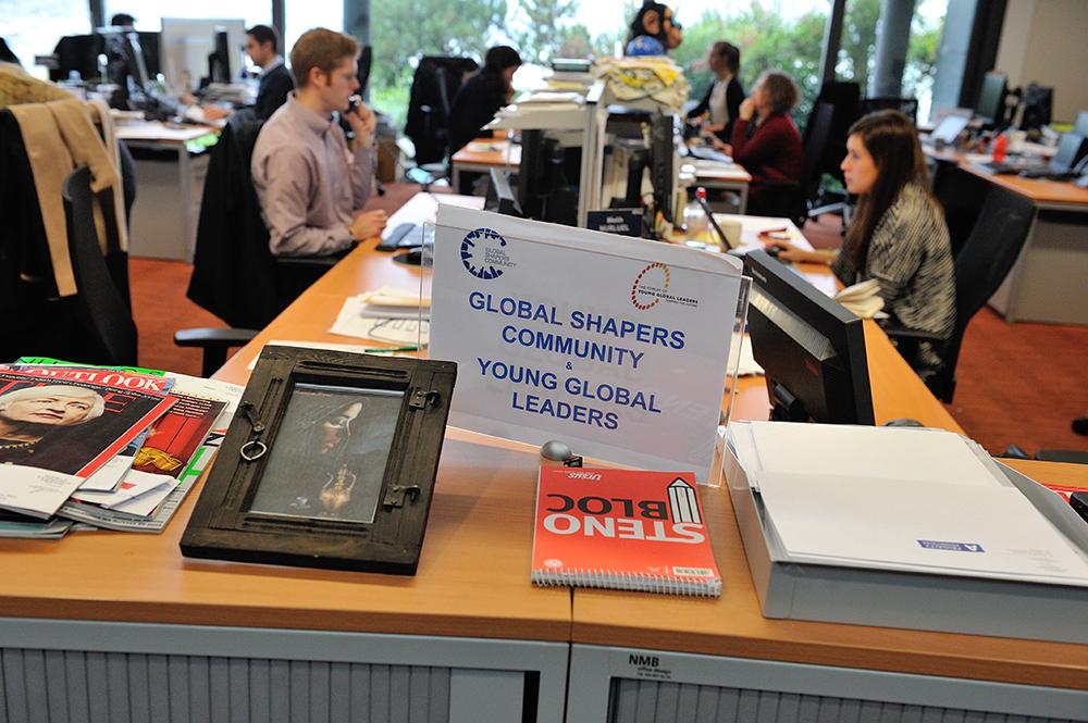 由克劳斯·施瓦布(Klaus Schwab)于1971年创办的世界经济论坛,如今依然由他负责。论坛在纽约和东京都设有办公室,但在达沃斯论坛召开前的日子里,各项工作都集中在日内瓦展开。其他驻地的员工纷纷飞来此地,参加最后的准备工作,早晨7点就已有人开始开会。1998年论坛总部竣工,2010年又得到扩建。只有施瓦布有自己的办公室,从他的阳台上可以看到日内瓦湖,其他员工全部在敞开式办公空间里工作。