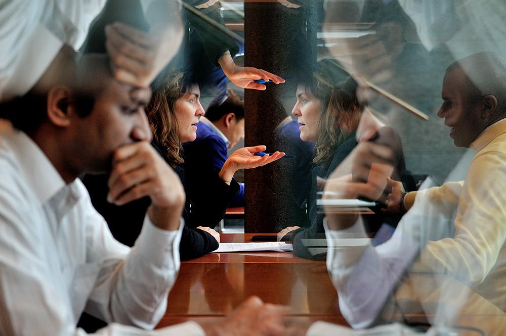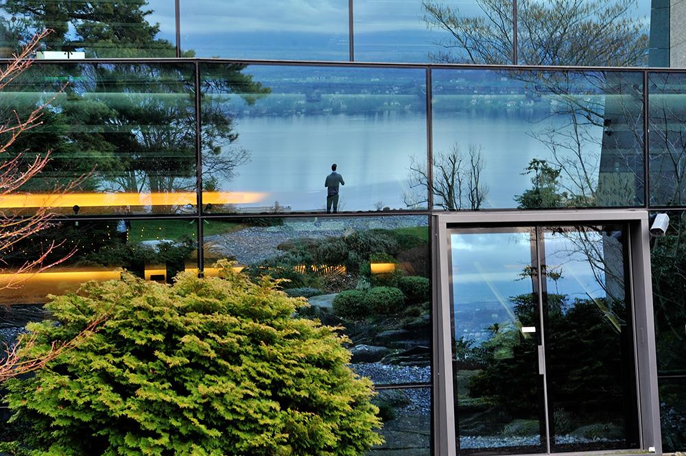 世界经济论坛( World Economic Forum)总部是一座专门建造、高度警戒的中心,位于俯瞰日内瓦湖的科洛尼(Cologny)镇某高级小区的一个山坡上。很少有摄影师获准走进这里,但摄影师马克·亨雷(Mark Henley)却得到了这一殊荣。他曾以一幅《伊朗会谈》作品,荣获2014年度“瑞士传媒摄影师”的称号。