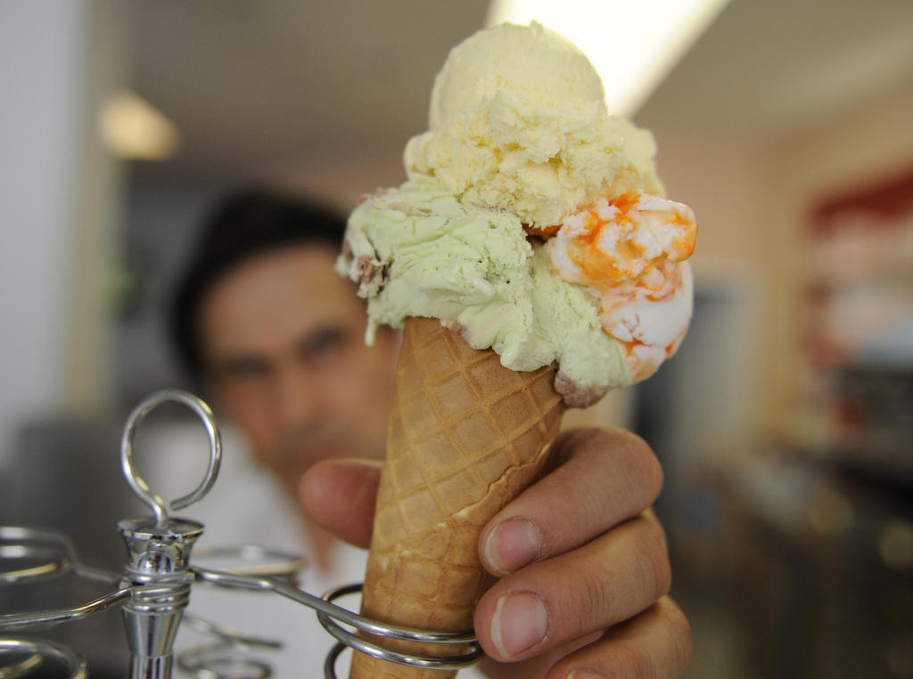 Ice cream by boat on a picturesque Swiss lake