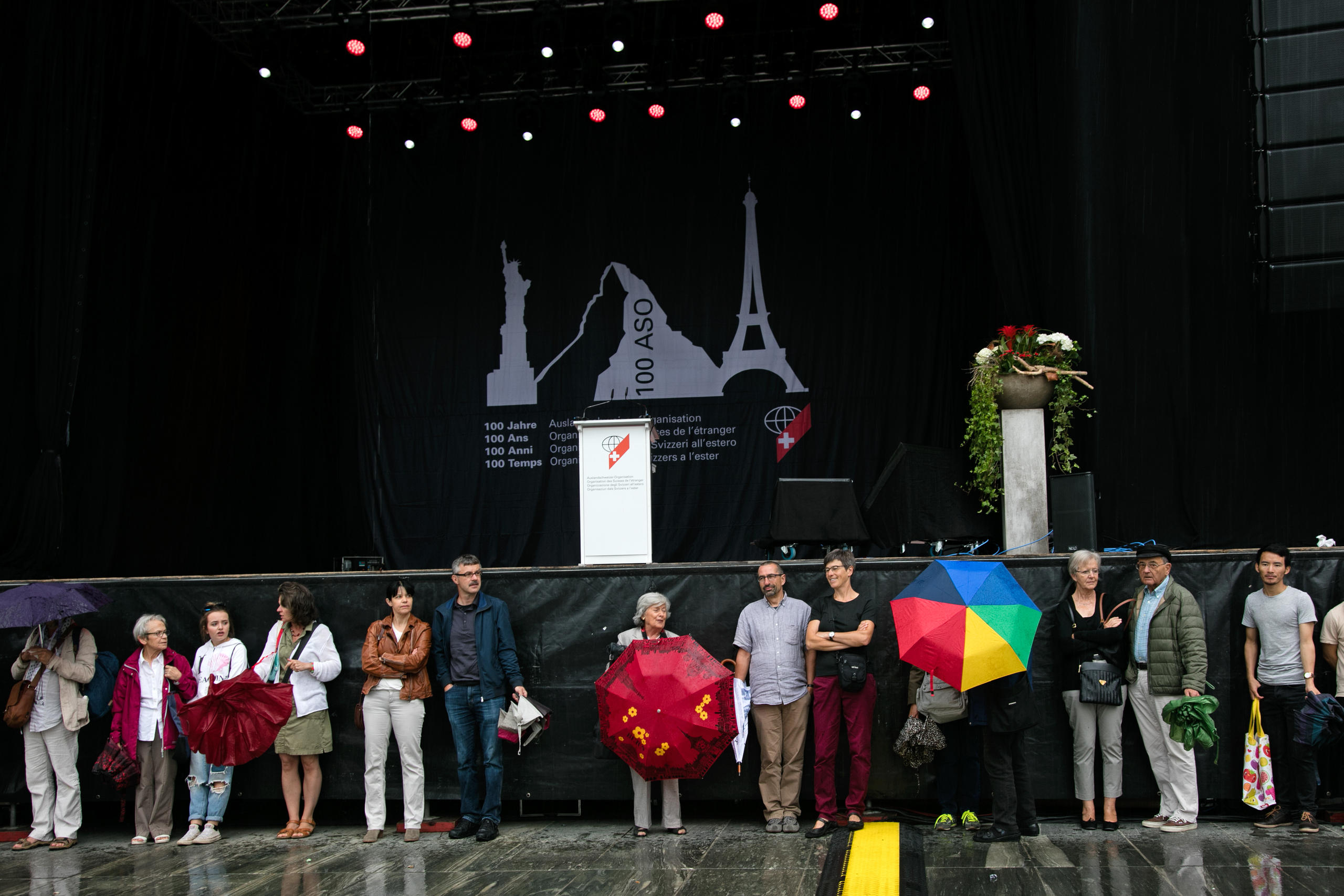 Entre drapeaux suisses et parapluies
