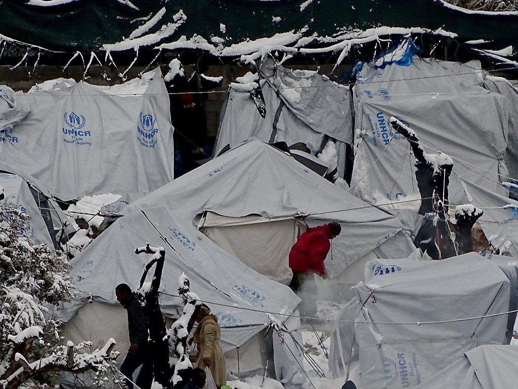Besonders hart traf die Kälte einen Teil der Flüchtlinge auf den griechischen Inseln der Ostägäis. Weil auf Chios und Lesbos nicht ausreichend beheizbare Wohncontainer zur Verfügung stehen, campen dort viele Menschen noch in Sommerzelten im Freien. Die Zelte sind mittlerweile eingeschneit, in den Lagern sei der Boden entweder eisig gefroren oder aber knöcheltief matschig, berichteten Flüchtlingshelfer.