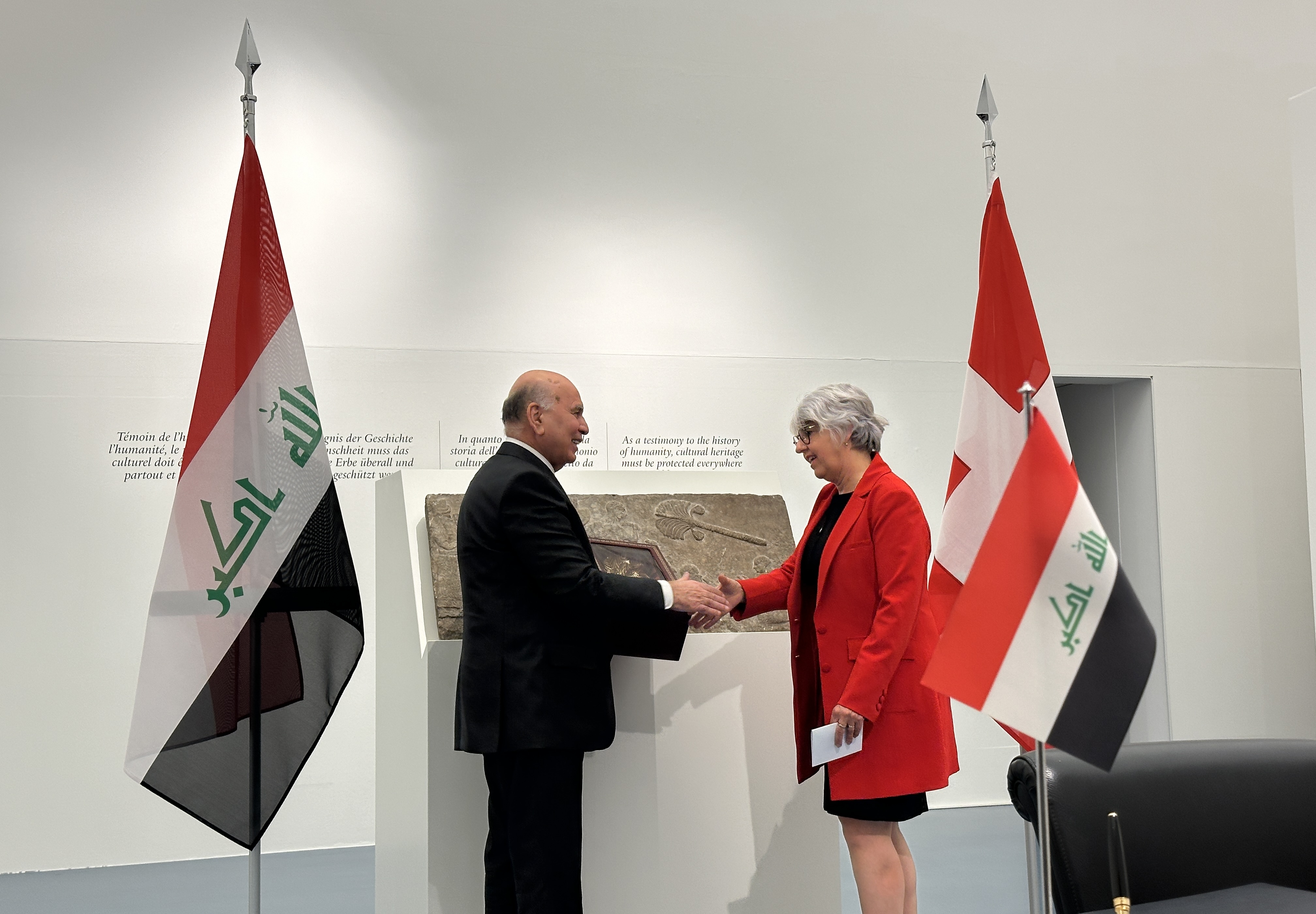 يوم الجمعة 24 مايو، أعادت سويسرا رسمياً إلى العراق ثلاث قطع أثرية مهمة من بلاد ما بين النهرين، كان قد تم استيرادها بشكل غير قانوني إلى سويسرا، وذلك خلال حفل أقيم في المكتب الفدرالي للثقافة في برن. وقدمت وزيرة الداخلية السويسرية إليزابيث باوم-شنايدر المنحوتتين والتمثال الآشوريين إلى نائب رئيس الوزراء ووزير الخارجية العراقي فؤاد حسين. وقد تضمنت زيارة حسين، التي استمرت ثلاثة أيام، لقاءً مع بيات يانس وزير العدل والشرطة السويسري.