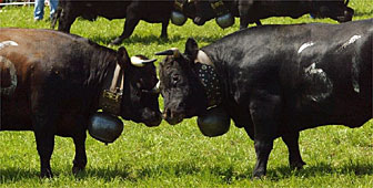 Grimentz has turned the annual event into a festival. But the cow fights remain the main attraction. The short and stocky black “Herens” cows go head-to-head and push each other until one gives up.