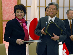 Along with signing the free-trade accord with Japanese Foreign Minister Hirofumi Nakasone in Tokyo, Economics Minister Doris Leuthard also met other Japanese ministers, including Economics Minister Toshihiro Nikai and Agriculture Minister Shigeru Ishiba.