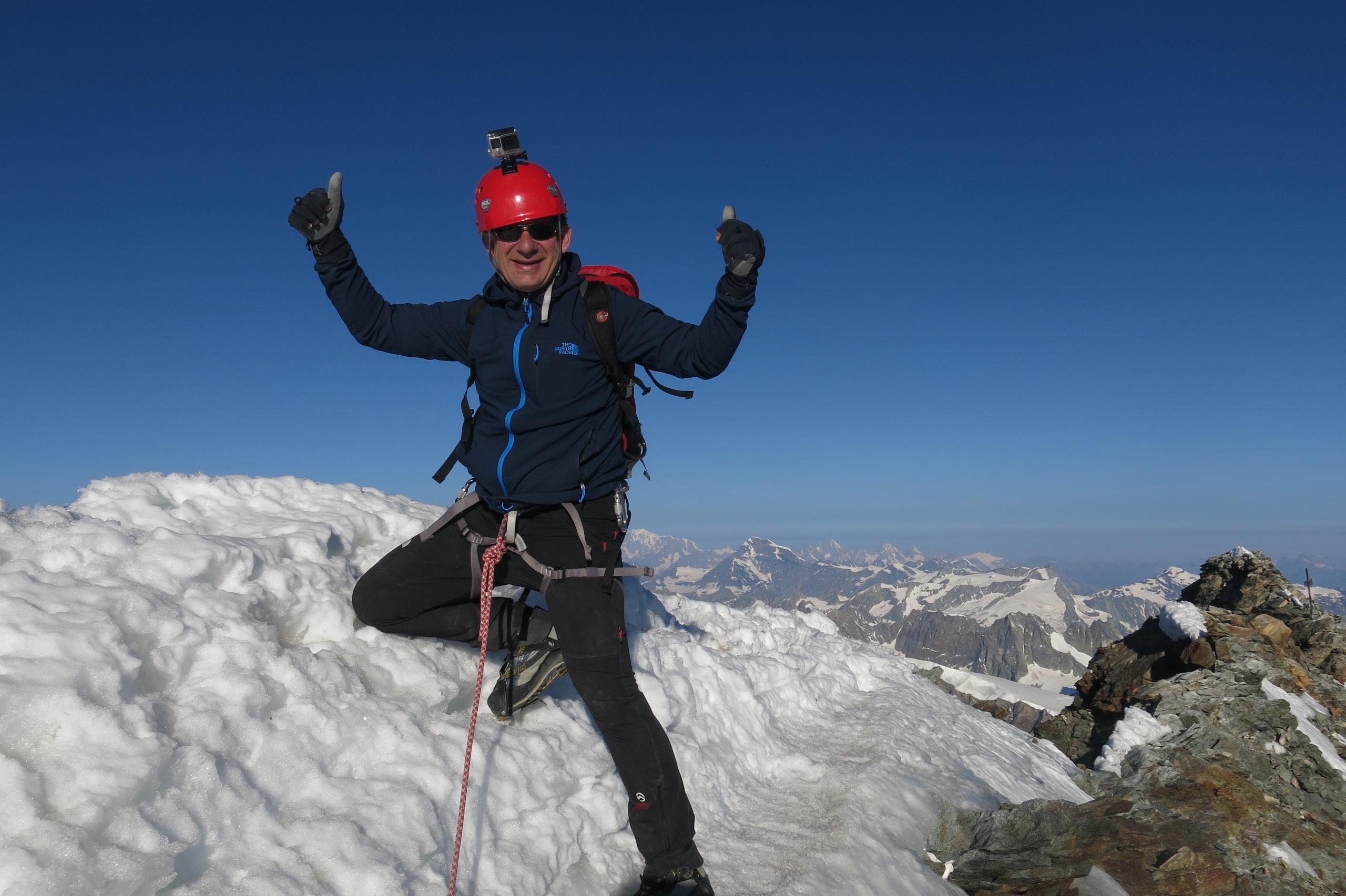 We were first to reach the summit that day. We got there in 3 hours 45 minutes and had the summit to ourselves for at least a quarter hour. That was unusual, and made it all the more special. Gianni dedicated his 287th summit to his ancestors who made the first ascent.