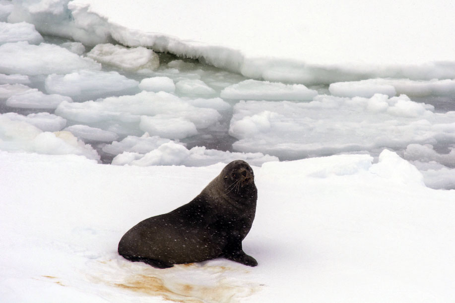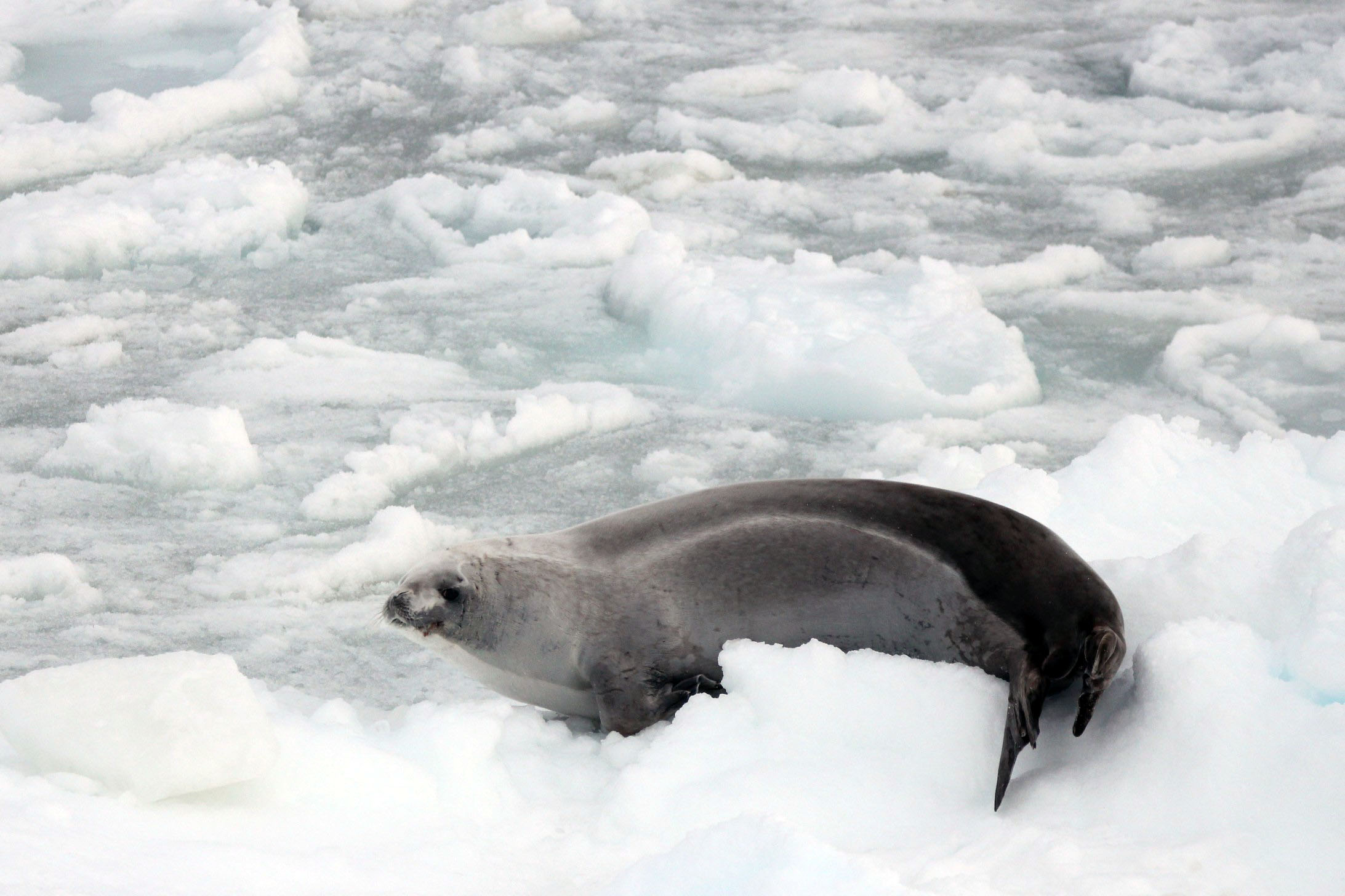 While still on our trajectory south, southern right whales and humpback whales were regular visitors to our ship; they would often approach the vessel while it was stationary. These majestic creatures make every encounter an unforgettable experience. Once we were closer to the continent, and the sea surface was regularly covered in sea ice, minke whales, seals and penguins became frequent sights. Minke whales travel far into regions covered by dense sea ice and can be seen when they surface in open water to breathe. The seals drift by on ice floats and generally don’t seem particularly impressed by the approaching ship – they often look like they are asleep.