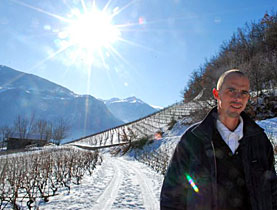 Most of the work he does with climate farming takes place in a small vineyard called Mythopia that he started four years ago on the terraced slopes above Sion, in the southern canton of Valais.