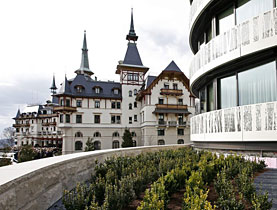 The hotel has undergone a radical transformation. The original fairytale-castle building from 1899 still stands but everything added since then has been ripped down and replaced by two modern glass and aluminium extensions.