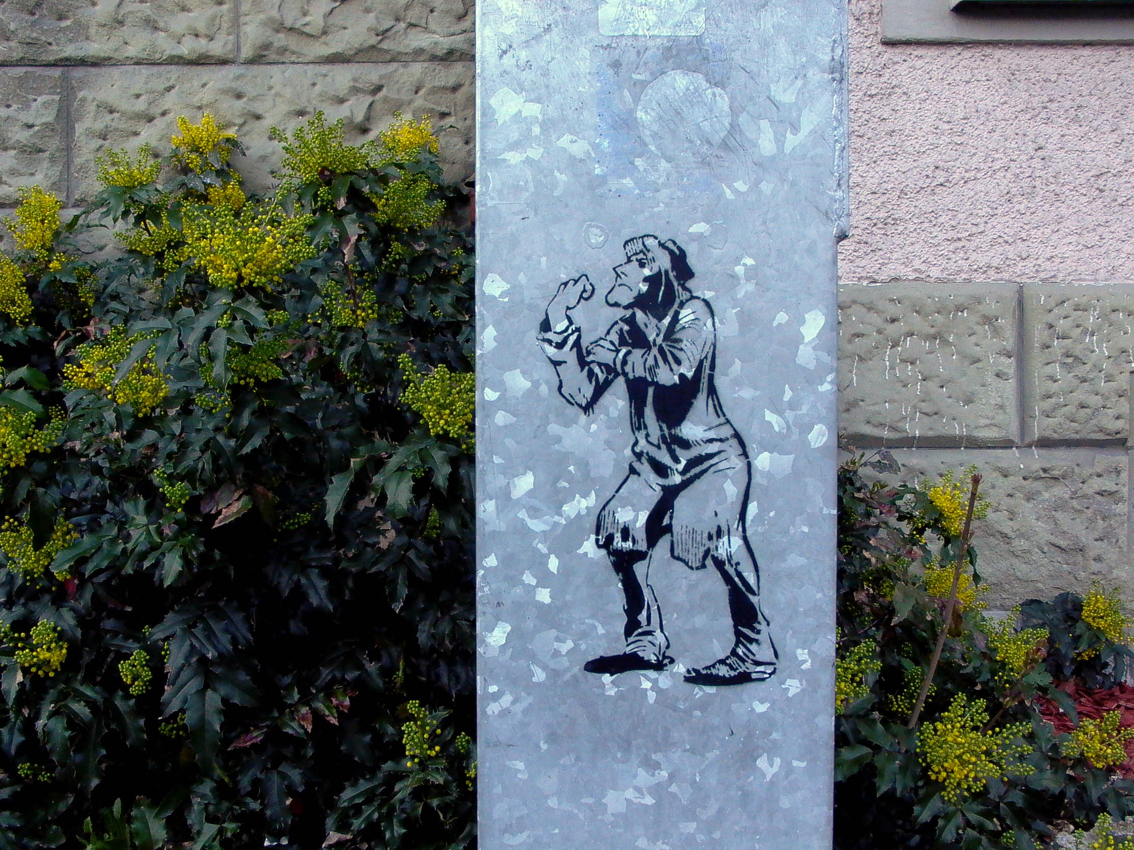 Describing himself as a political artist, Naegeli sprayed about 1,000 works around the city, an activity which culminated in his arrest in 1979 for defacing public property. Escaping to Germany, Naegeli was sentenced to prison in absentia, while in Zurich, the artistic community rallied to his defence.