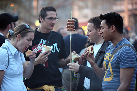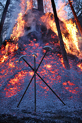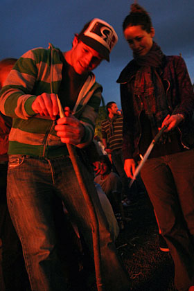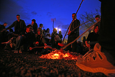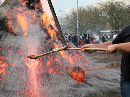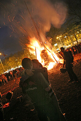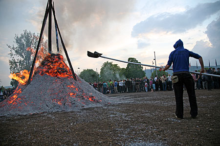 Sechseläuten reaches its climax with the burning and explosion of a huge snowman effigy, the Böögg. But afterwards throngs of people collect embers from the dying bonfire and hold a giant barbecue until the early hours. (Pictures and text: Christoph Balsiger, swissinfo)