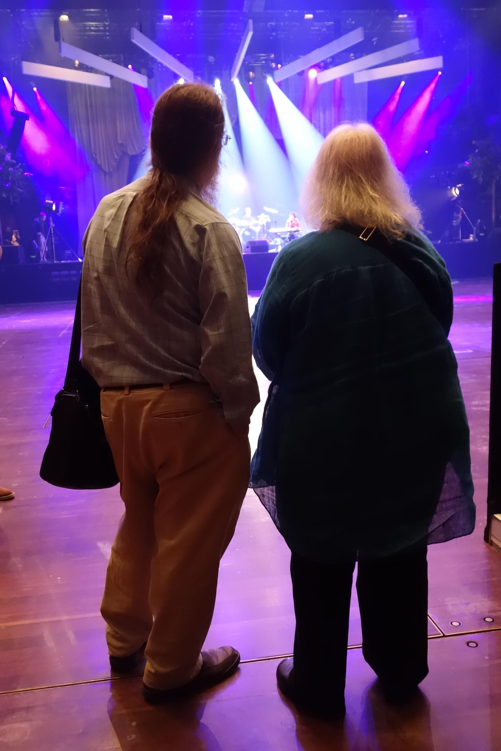Standing in the middle of the empty 4,000-capacity Stravinski Hall, the main concert room, the Meyers listen intently as Max Jury and his band, tonight’s warm-up artist for pop superstar Lana Del Rey, do their sound check.