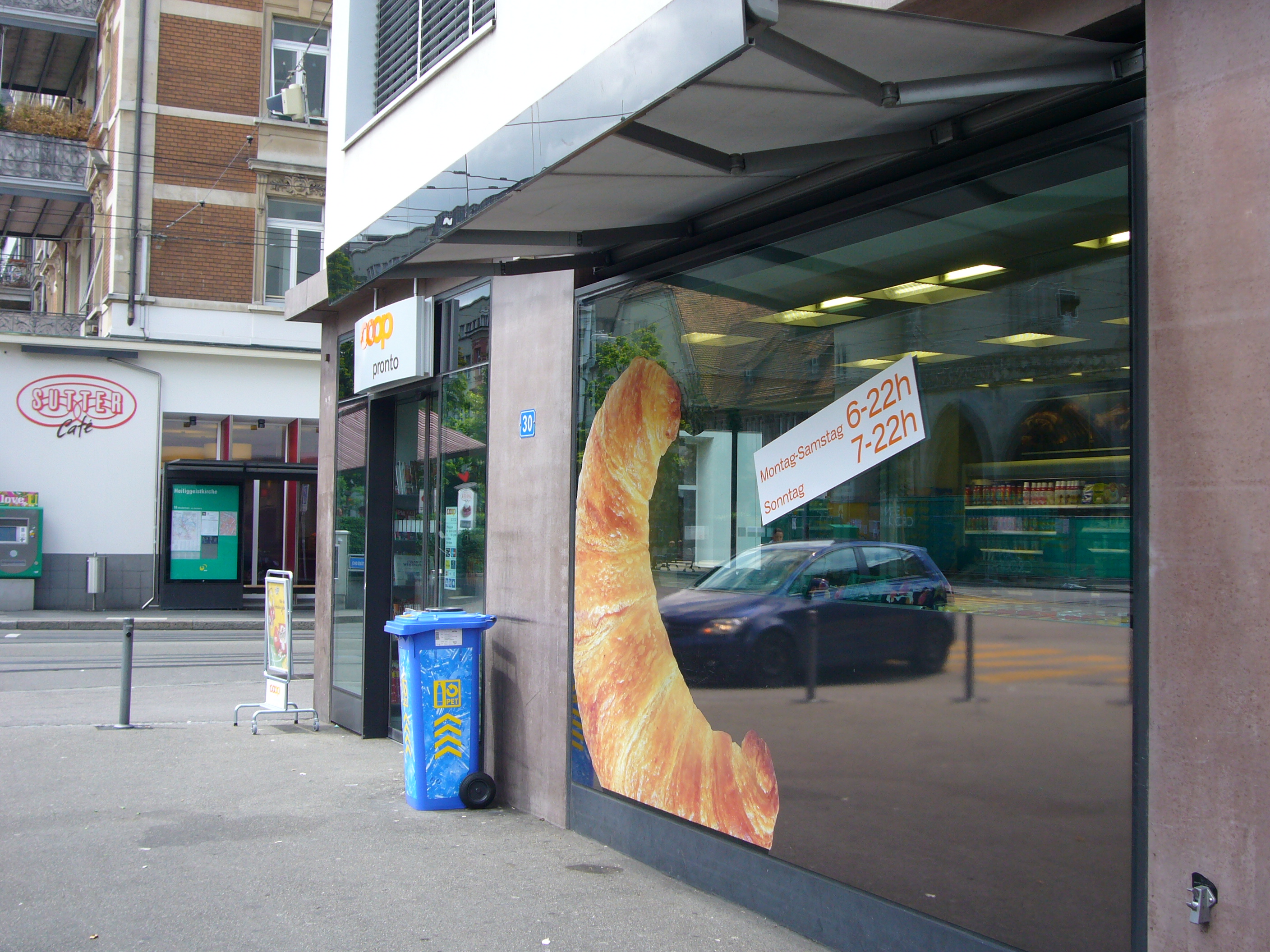 It’s a hot sunny day in June and hardly anyone is doing a big shop. Most of the people in the Basel store on the corner of Güterstrasse and Tiersteinallee are picking up only small things: vegetables, muesli, bread or milk.