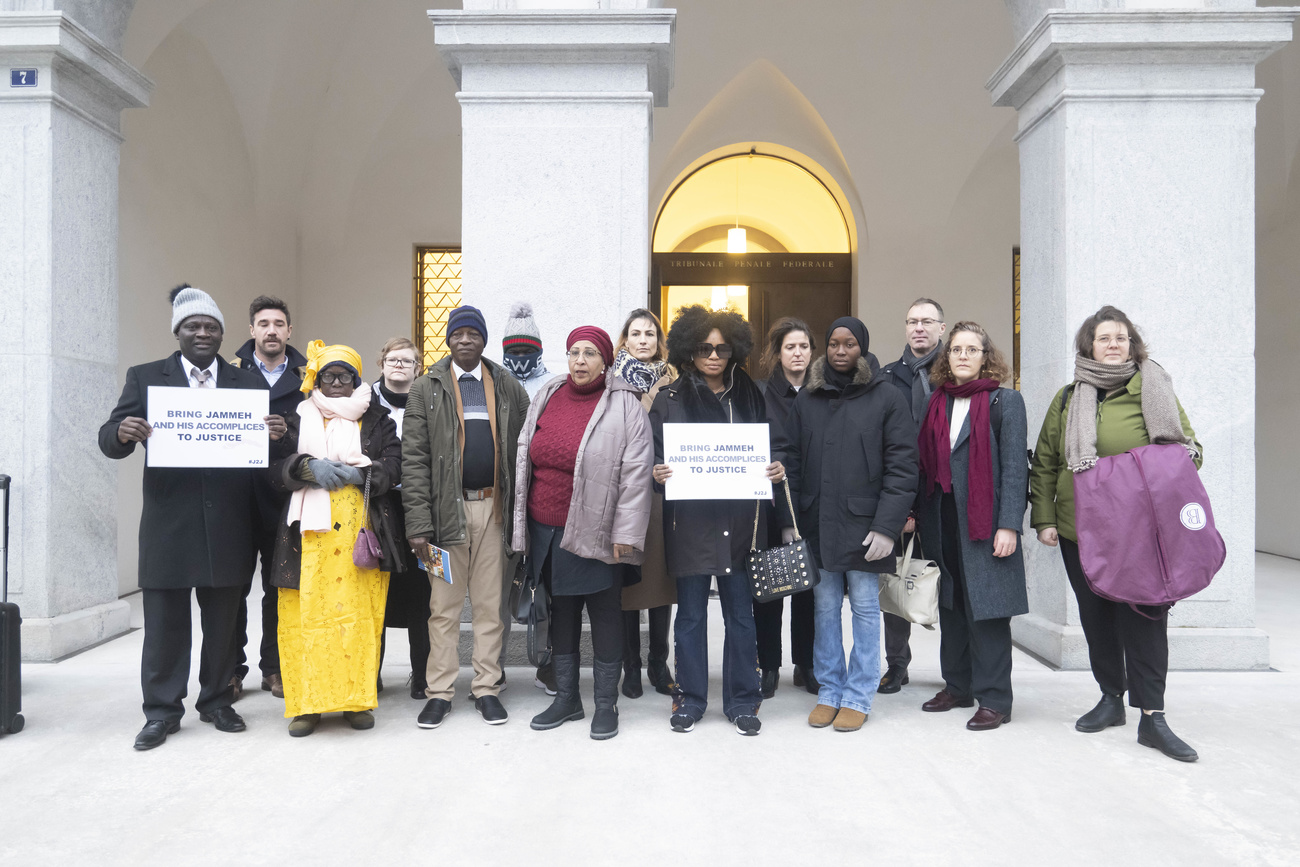 Nine Gambian plaintiffs and their relatives outside Federal Criminal Court in Bellinzona.
