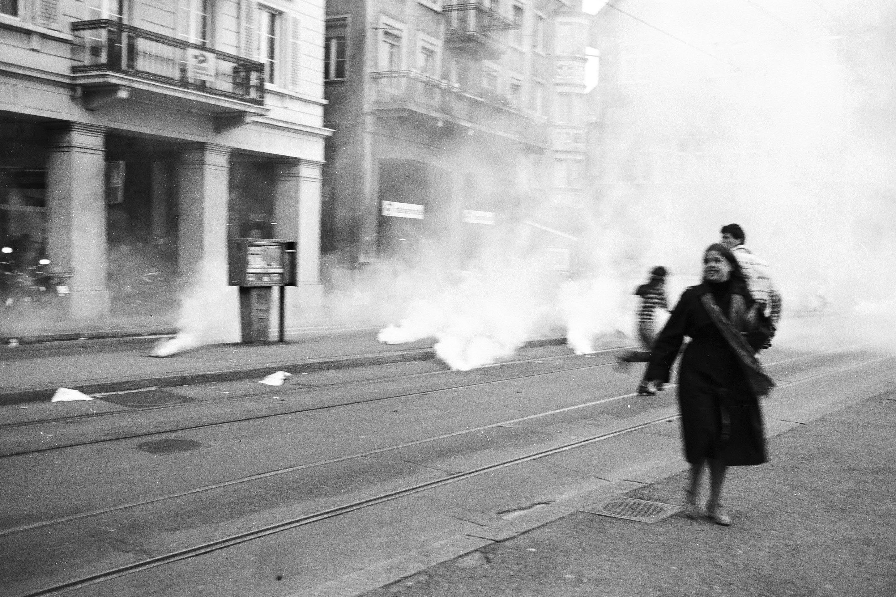 A growing frustration among youth throughout the 1970s at a lack of public funding and work space for a new generation of musicians, actors and artists eventually led to months of riots and clashes with police in Zurich’s normally orderly streets. Photographer Olivia Heussler was a witness.