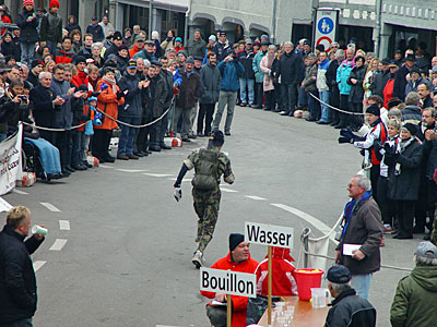 The top event in this typically Swiss sport is run over the marathon distance of 42 kilometres. It developed from a purely military exercise in the 1930s to a sport discipline in its own right. Participants wear battle dress and carry at least 6.2kg, including a back pack and military-issue rifle. Civilian footwear is allowed.