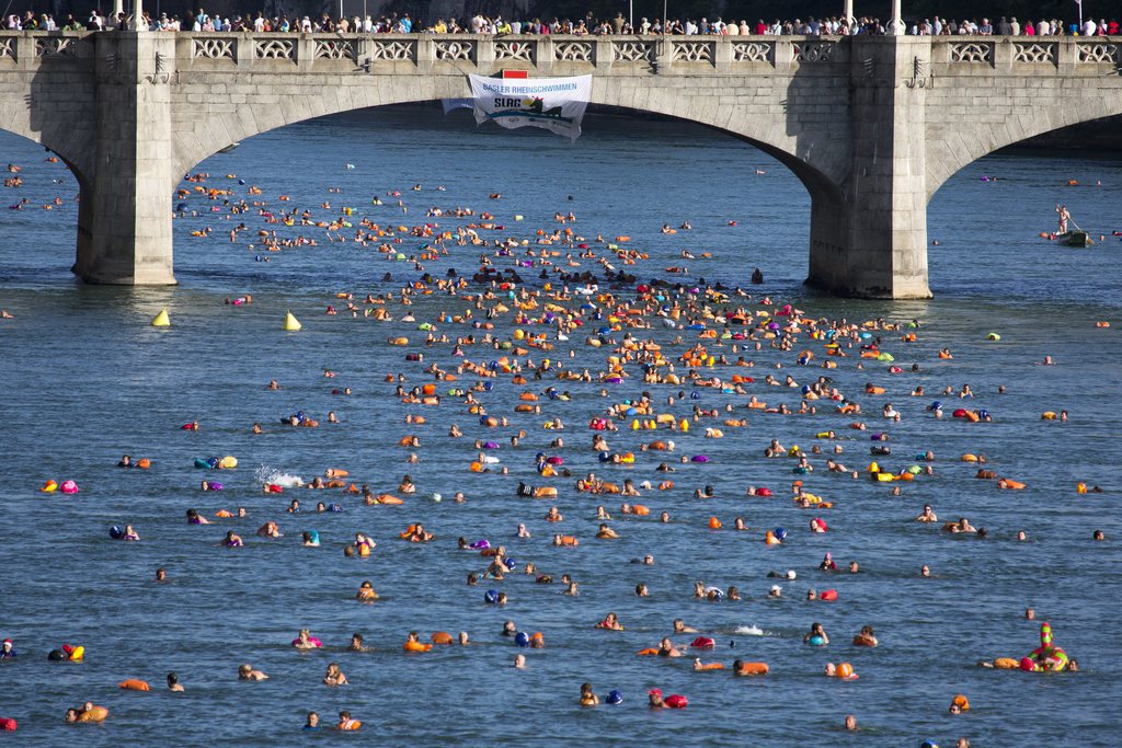 Some 3,000 people took part in the 33rd Basel Rhine Swim on Tuesday. The fastest swimmers needed 20 minutes to complete the 1.8-kilometre stretch between the Schwarzwald and Wettstein bridges – in glorious water temperatures of 22 degrees Celsius.
