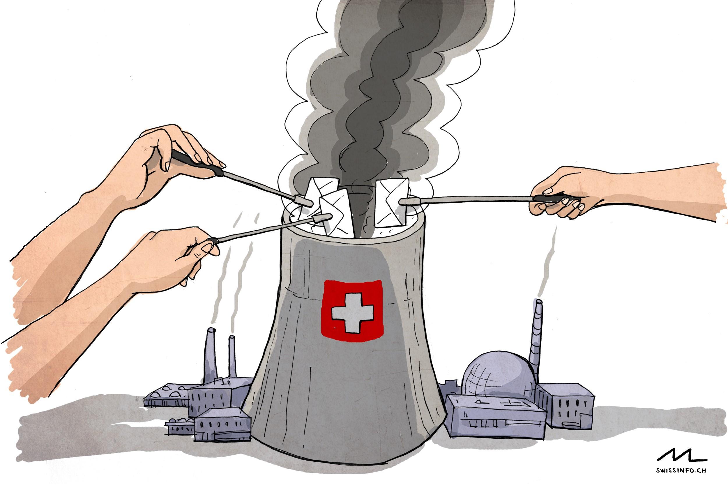Direct democracy was another subject that made for a good cartoon opportunity. The vote in November 2016 on whether to wean Switzerland off nuclear power was given a very Swiss treatment.