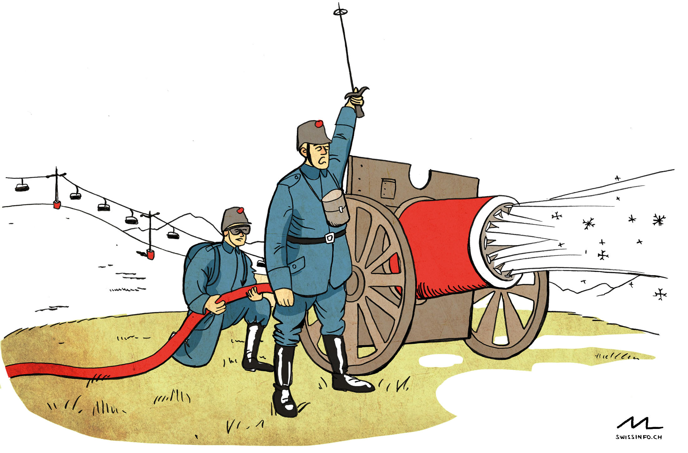 Lutz joined swissinfo.ch a year ago to produce the “Cartoon of the week” series and we published her final drawing on March 10. The 28-year-old painter and political cartoonist comes from the Romansh-speaking area of canton Graubünden. She was asked to transform current events in Switzerland into cartoons that even those unfamiliar with the country would understand.