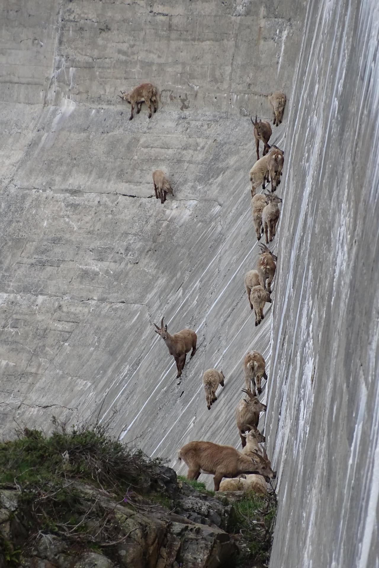 It's a rare sight: a whole herd of ibex climbing the Salanfe dam. You have to be lucky to witness this acrobatic act, during which the animals actually supplement their diet with mineral salts.