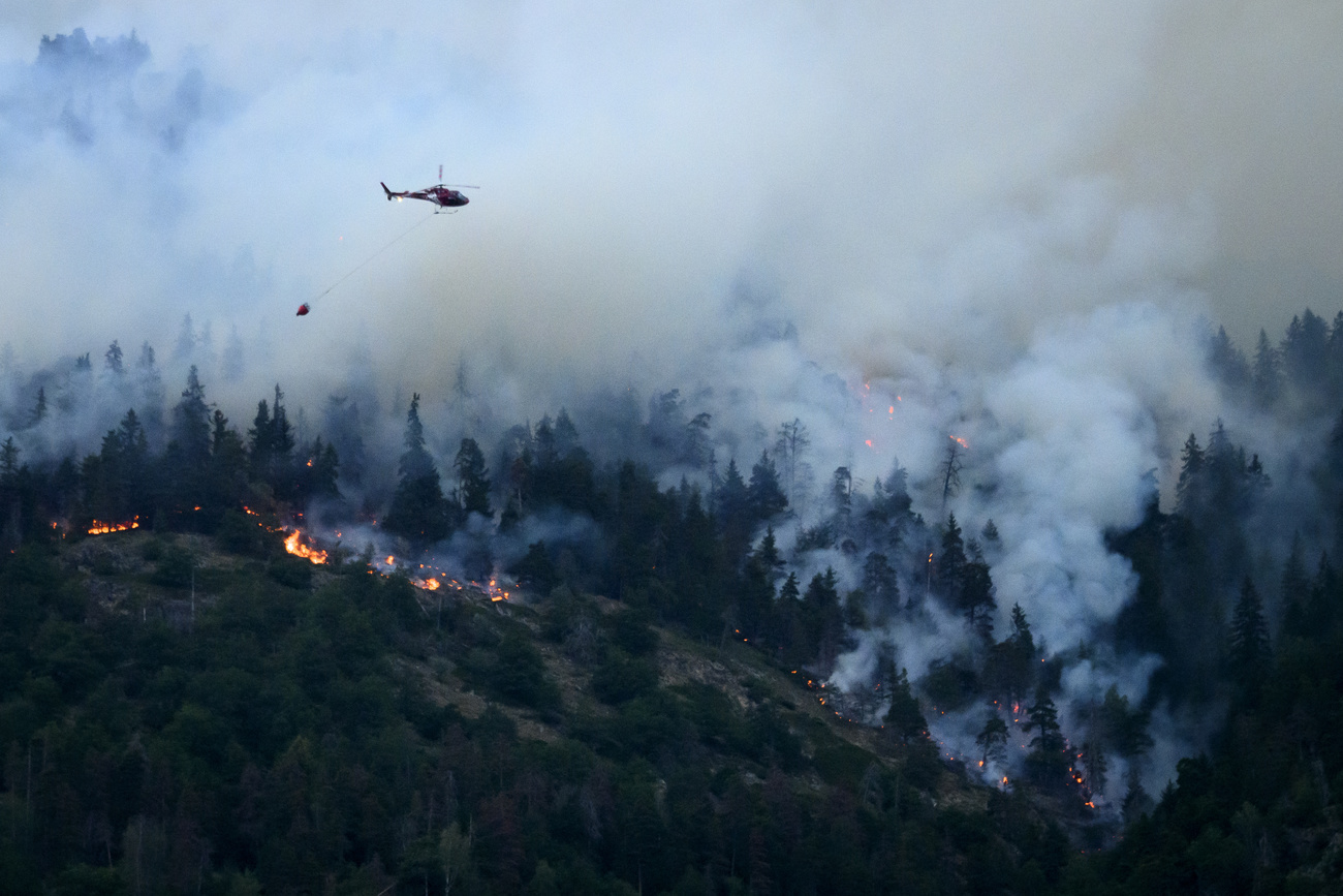 It’s all hands to the pumps to put out a huge forest fire in canton Valais. But the arrival of army reinforcements has sparked a bizarre helicopter turf war.