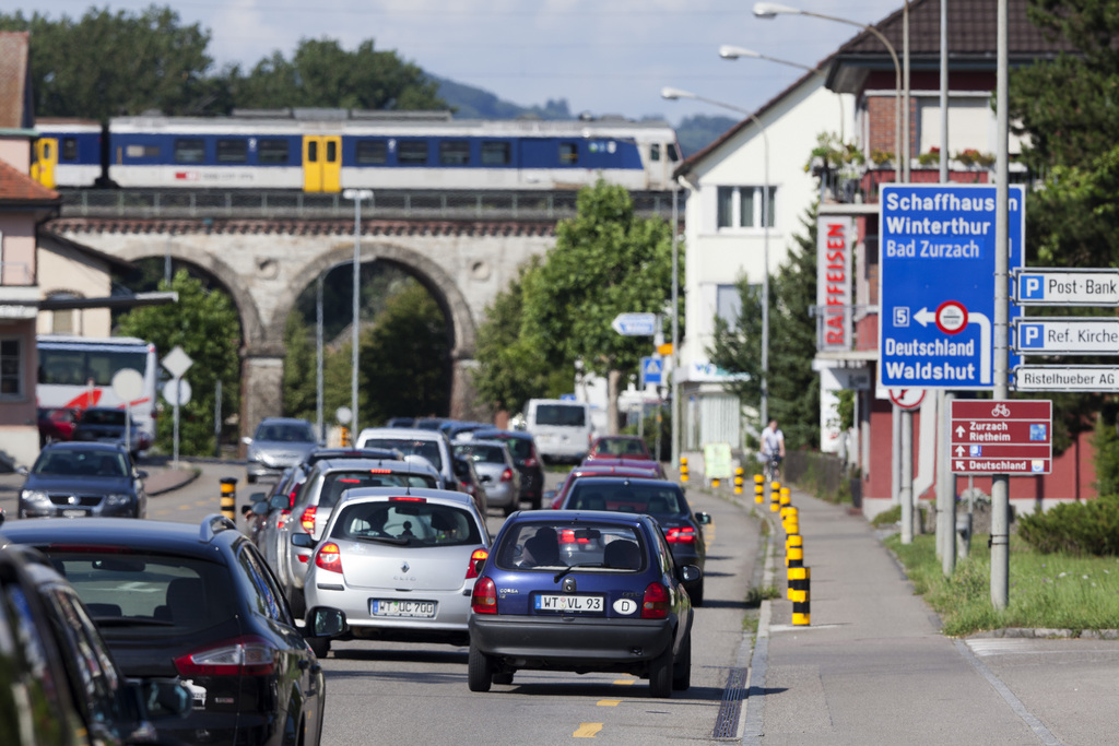 Turn a corner in the village of Koblenz and you’ll see cars and ten-wheeler trucks backed up waiting to enter or exit Germany, blocking the idyllic view of the Rhine River. It’s one of many Swiss border towns struggling to cope with growing traffic.