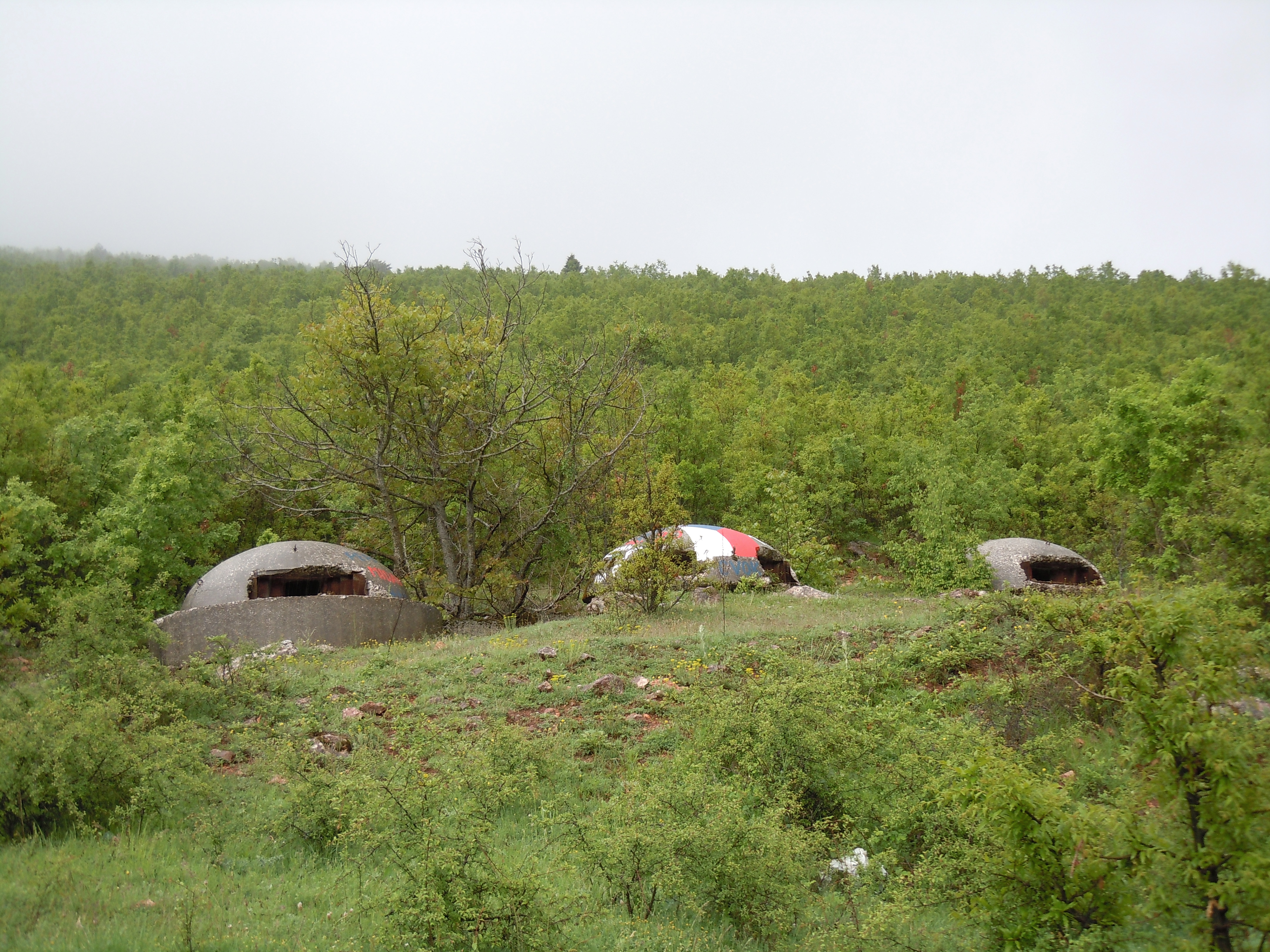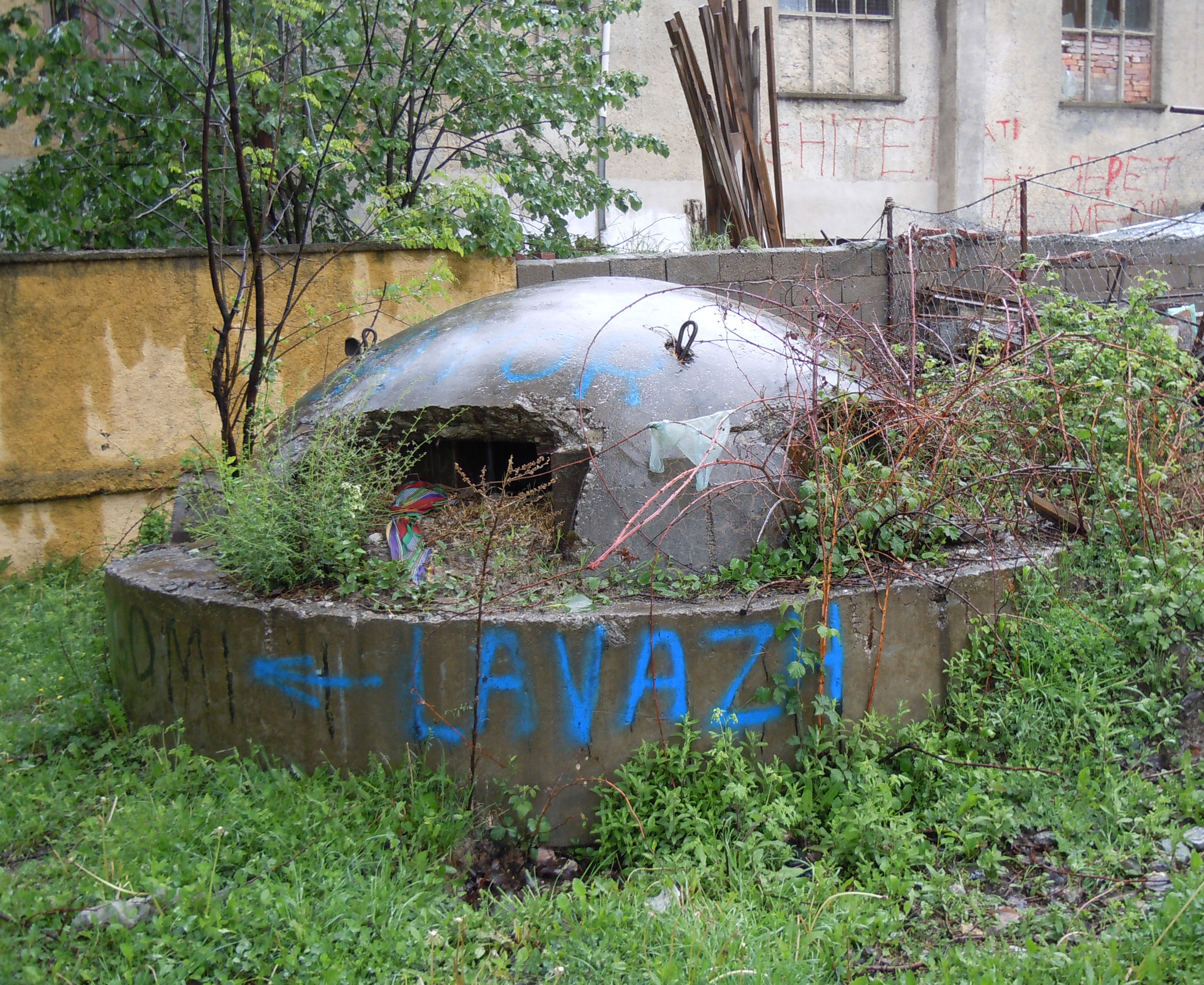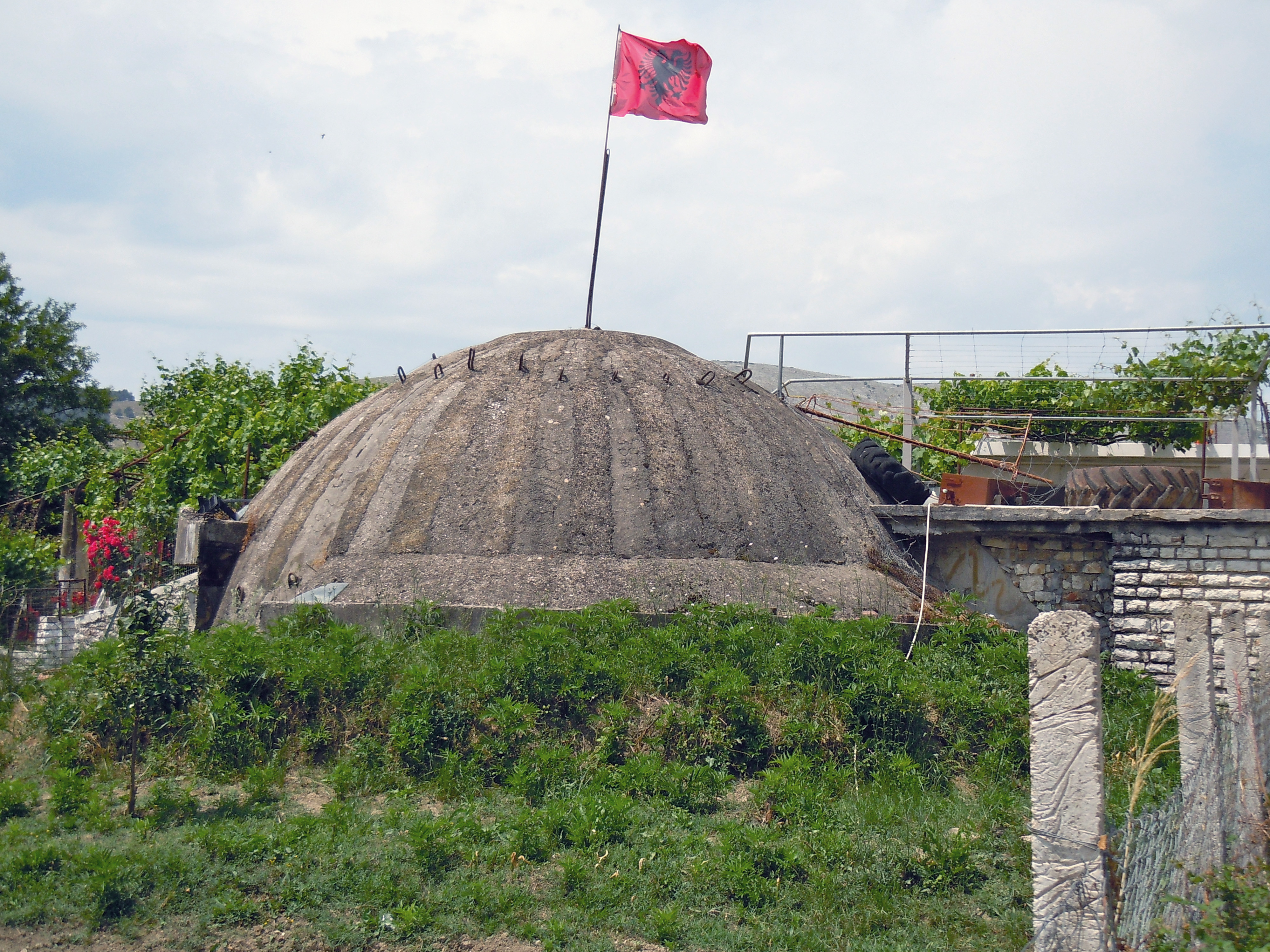 In the 1970s and 1980s the Stalinist regime had hundreds of thousands of steel and concrete bunkers built, out of fear of foreign invasion. Today they have lost their military purpose. Some were dismantled and removed, others are slowly mouldering away or have been covered by vegetation; others have found a use as storerooms or stables while others still have been placarded with advertisements. Larger bunkers have even been converted into cafés or hostels.