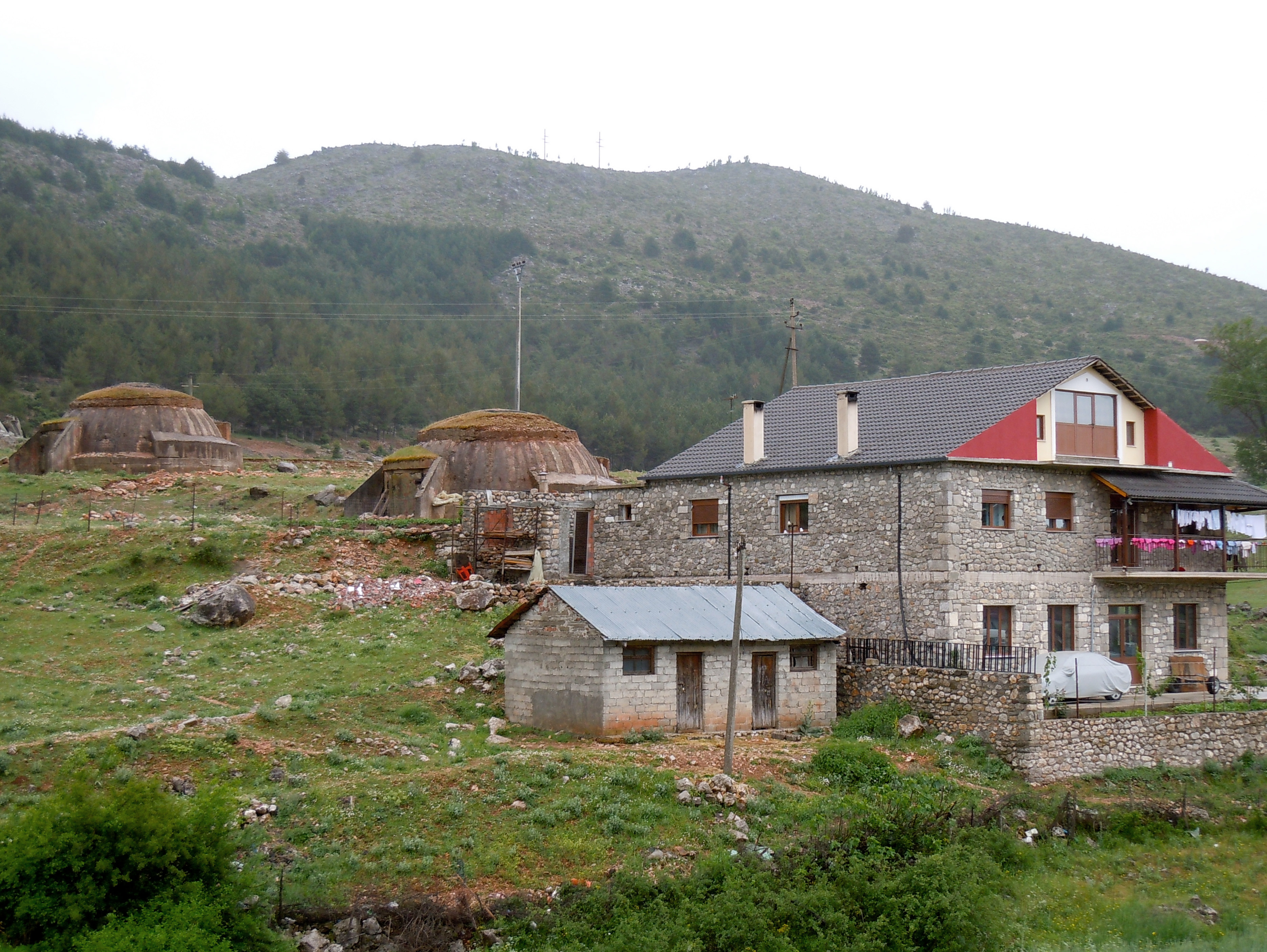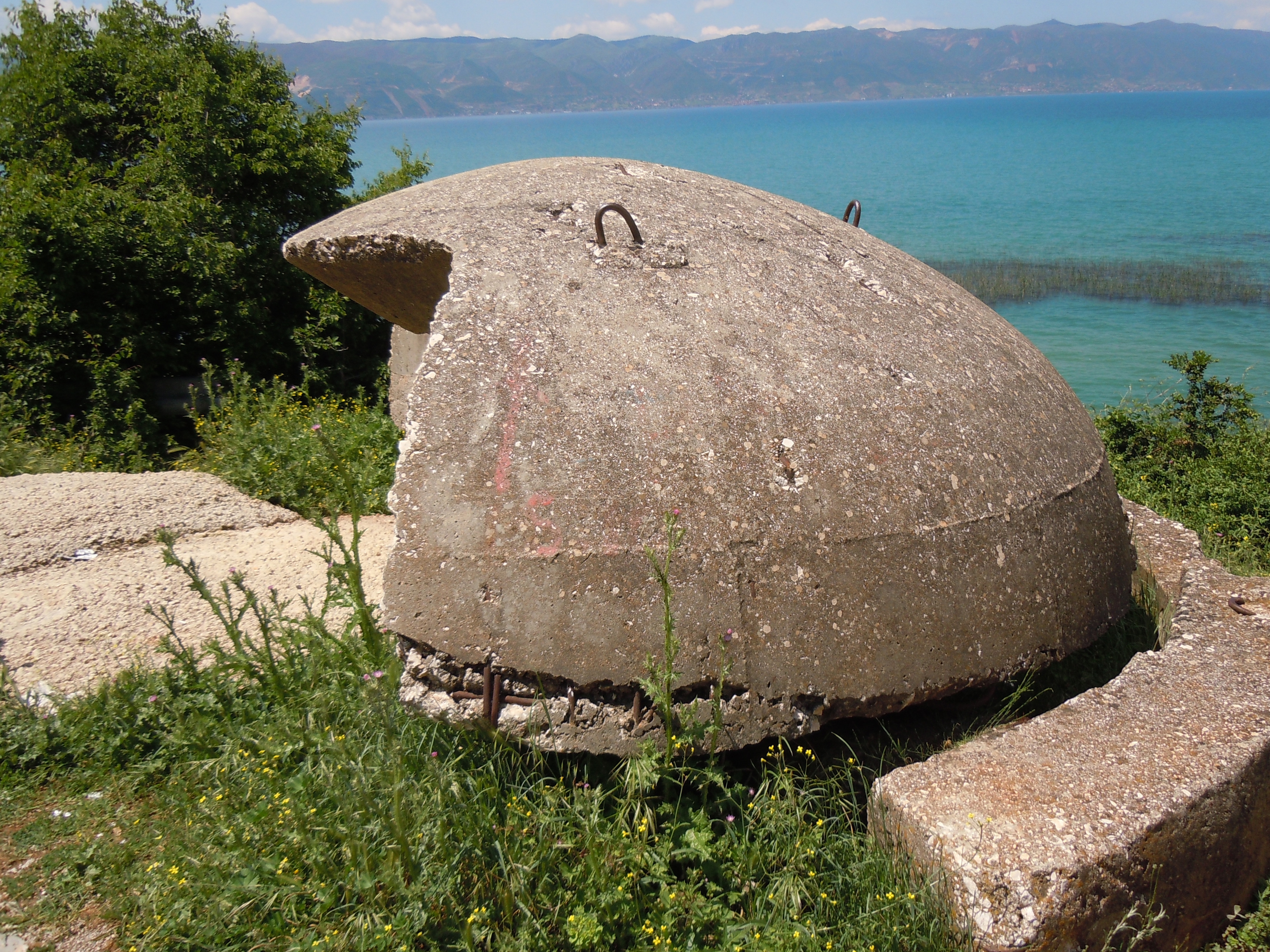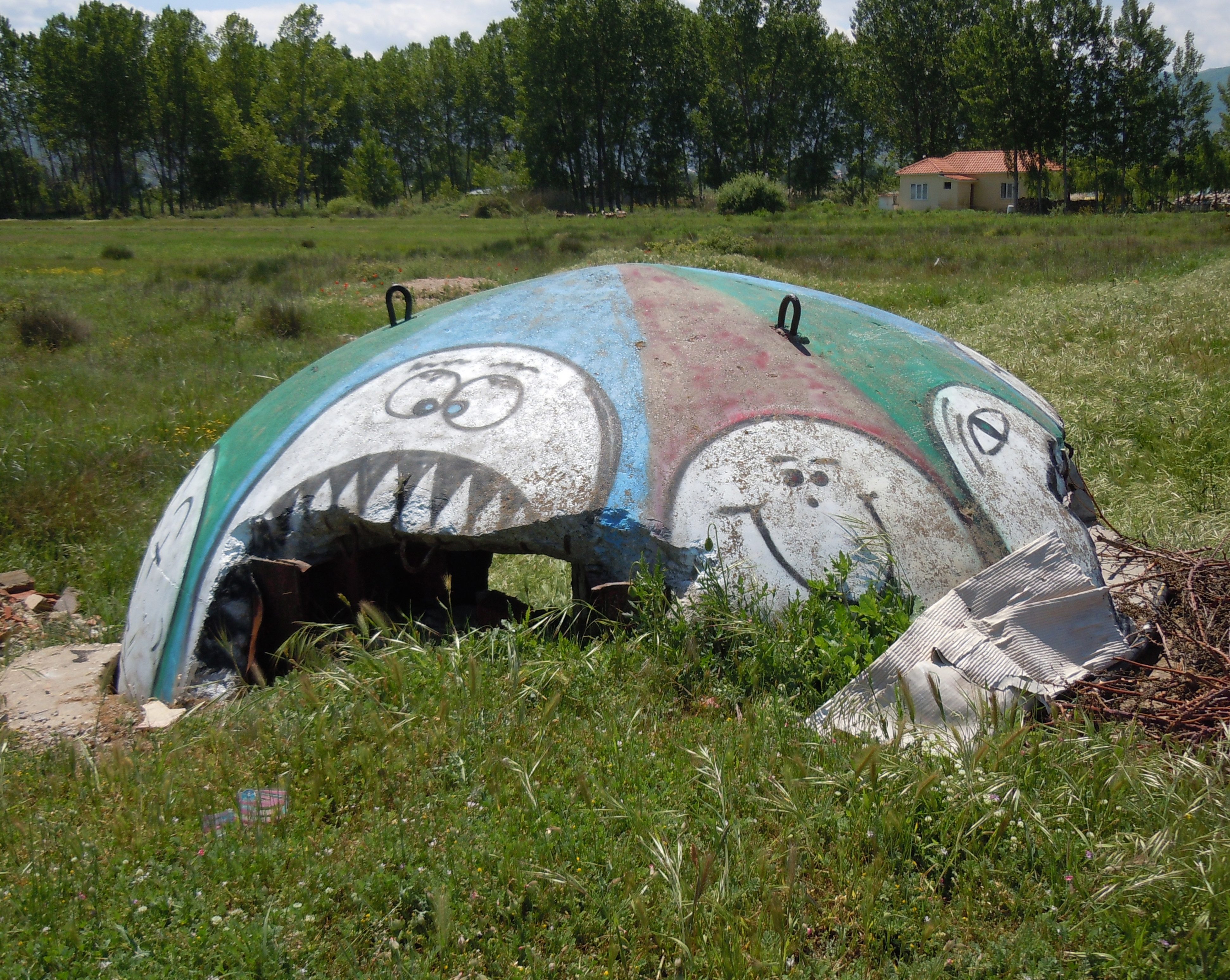 In the 1970s and 1980s the Stalinist regime had hundreds of thousands of steel and concrete bunkers built, out of fear of foreign invasion. Today they have lost their military purpose. Some were dismantled and removed, others are slowly mouldering away or have been covered by vegetation; others have found a use as storerooms or stables while others still have been placarded with advertisements. Larger bunkers have even been converted into cafés or hostels.