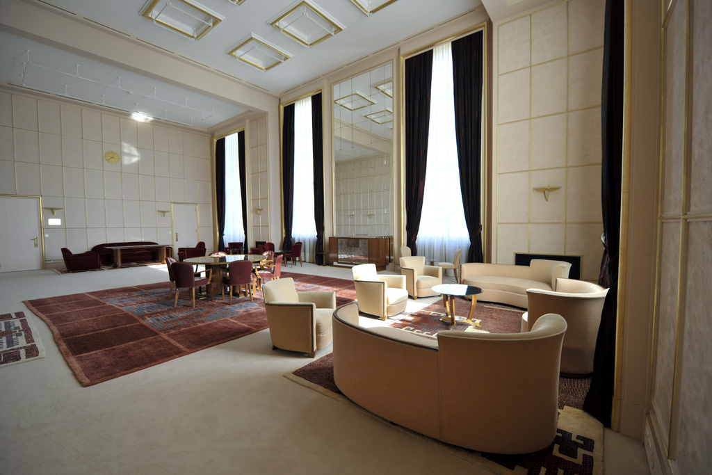 Switzerland is paying for work which is already underway at the building, the main part of which dates back to 1937: replacement windows, improved insulation, modernisation of the lighting and ventilation and installation of solar panels.