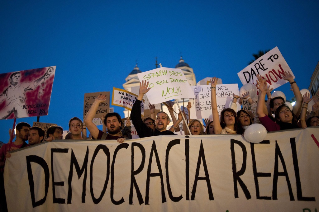 15. Mai 2011: Mindestens 20’000 Personen «ohne Dach, ohne Arbeit, ohne Pension und ohne Angst» geben ihrer Wut in verschiedenen spanischen Städten Ausdruck.