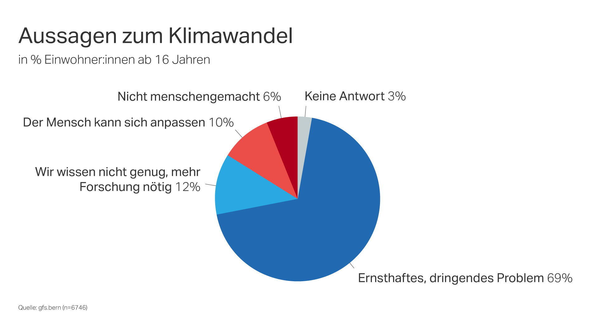 Wer sich um das Klima sorgt, ist in der Schweiz in guter Gesellschaft. Sieben von zehn Schweizer:innen geht es gleich. Das ist das Ergebnis einer grossen Umfrage, welche das Forschungsinstitut gfs.bern im Auftrag der SRG, zu der auch swissinfo.ch gehört, gemacht hat.
