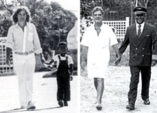 Nella prima foto un Mansutti con i capelli lunghi tiene per mano un bambino. Nella seconda foto, scattata a 30 anni di distanza, Mansutti, capelli corti, è di nuovo vicino al bambino di allora, diventato nel frattempo un uomo che indossa un’uniforme da pilota! Uno dei tanti