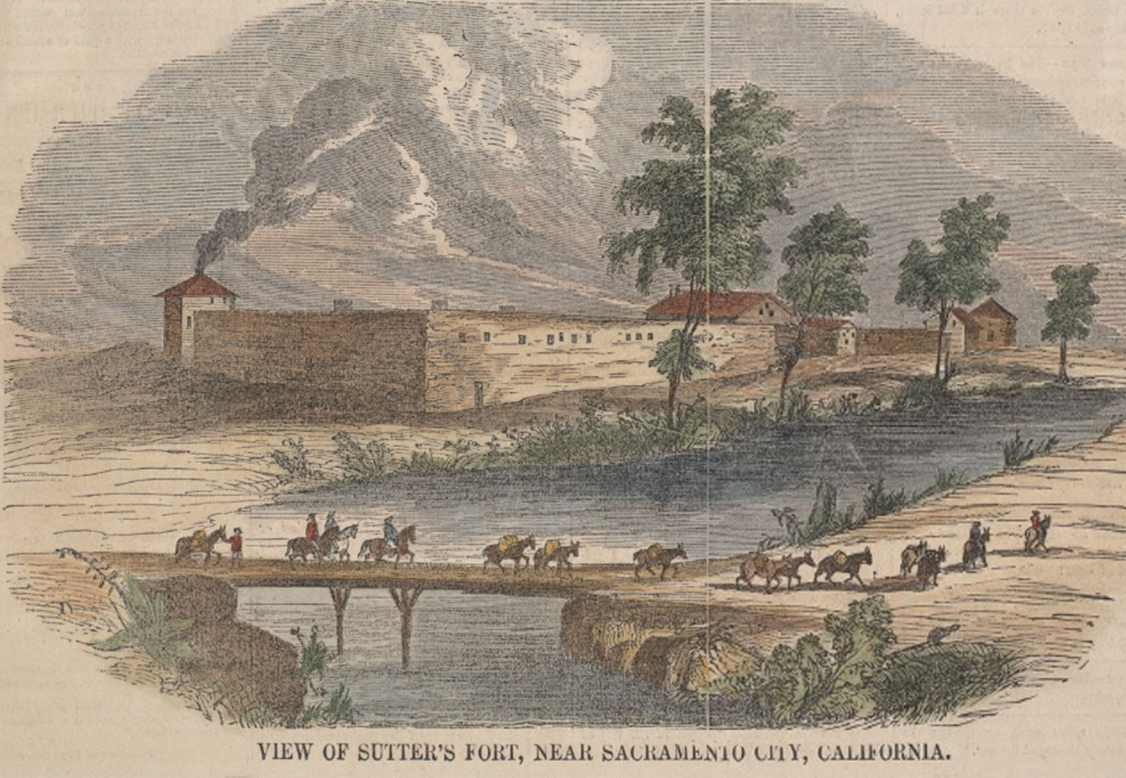 Johann August Sutter (1803-1880) emigrou para os Estados Unidos em 1834 após a falência de sua loja de artigos de retrosaria e tecidos. Mas mesmo no Novo Mundo seus negócios não conheceram o sucesso. Ele teve de mudar várias vezes de lugar e sempre deixou para trás uma montanha de dívidas. Os Estados Unidos depressa se tornaram um lar perigoso para esse impostor, que se dirigiu então para o sul. No México, recebeu do governador cerca de 200 quilômetros quadrados de terra no Vale de Sacramento, onde pôde instalar-se. Aí fundou a colônia “Nova Helvécia”. Mas isso não lhe trouxe sucesso econômico. A fim de cobrir suas dívidas, ele fez com que escravos indígenas trabalhassem para ele e traficou crianças nativas. A adesão da Califórnia aos Estados Unidos em 1850 envolveu Sutter, até sua morte, em uma luta incansável por suas terras. Em vão. Embora tenha recebido uma pensão por alguns anos, nunca houve uma decisão positiva quanto ao reconhecimento de sua propriedade..