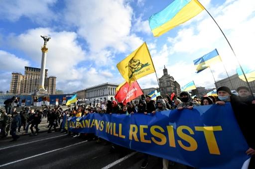 آلاف الأوكرانيين يتظاهرون في كييف ضد غزو روسي محتمل