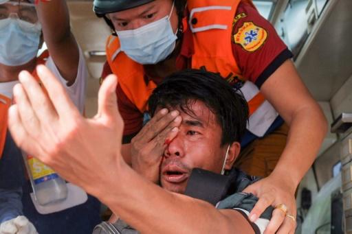 متظاهر مؤيد للديموقراطية أصابته القوى الأمنية في بورما في ماندلاي في 20 شباط/فبراير 2021 afp_tickers