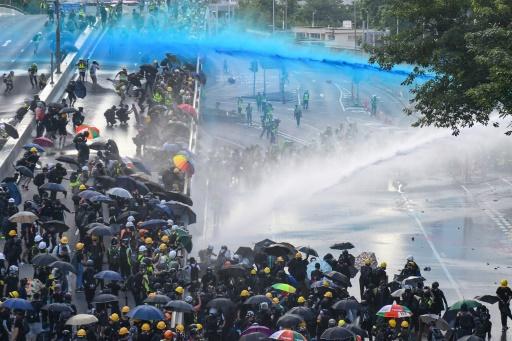 غرقت هونغ كونغ مساء الأحد بأعمال عنف جديدة، بعدما لجأت الشرطة إلى قنابل الغاز المسيّل للدموع وخراطيم المياه ضدّ ناشطين مطالبين بالديموقراطية كانوا يرشقون بدورهم الحجارة وقنابل المولوتوف خلال تظاهرة محظورة.