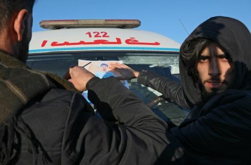 وضمّ عجوز بلحية بيضاء عصاه إلى صدره فيما رفع على هاتفه صورة ابنه البالغ من العمر 24 عاماً فقط.