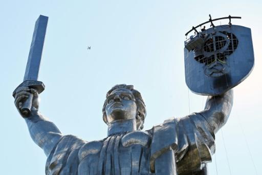 أوكرانيا تزيل شعار المطرقة والمنجل من تمثال ضخم في كييف