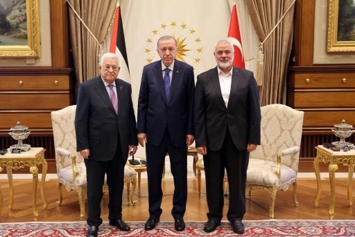 استقبل الرئيس التركي رجب طيب إردوغان رئيس السلطة الفلسطينية محمود عباس ورئيس المكتب السياسي لحركة حماس اسماعيل هنية في أنقرة الأربعاء، وفق ما أفادت الرئاسة التركية.