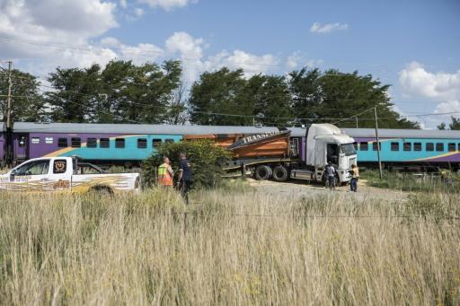موظفو خدمة الطوارئ يقفون قرب موقع حيث اصطدم قطار بشاحنة بتاريخ 4 كانون الثاني/يناير 2018 قرب كرونستاد في جنوب افريقيا afp_tickers