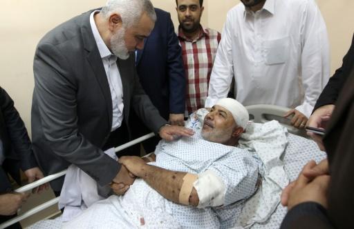 ونشر مكتب رئيس المكتب السياسي لحماس اسماعيل أبو هنية صورة وهو يزوره في مستشفى الشفاء في مدينة غزة ورأسه ملفوف بالشاش لكنه بدا مبتسما.
