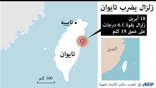أعلن مركز المسح الجيولوجي الأميركي أن زلزالا بقوة 6,1 درجات ضرب تايوان الخميس حيث تسبب بإصابة 17 شخصا بجروح وباضطرابات في حركة المرور.