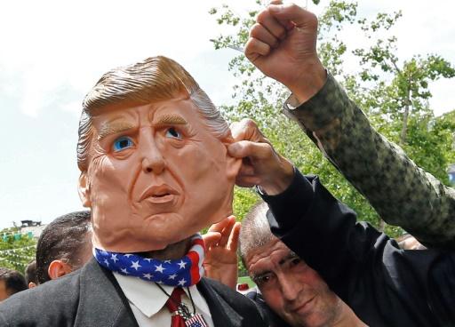 دمية تمثل الرئيس الاميركي خلال تظاهرة في طهران في 19 ايار/مايو 2019 afp_tickers