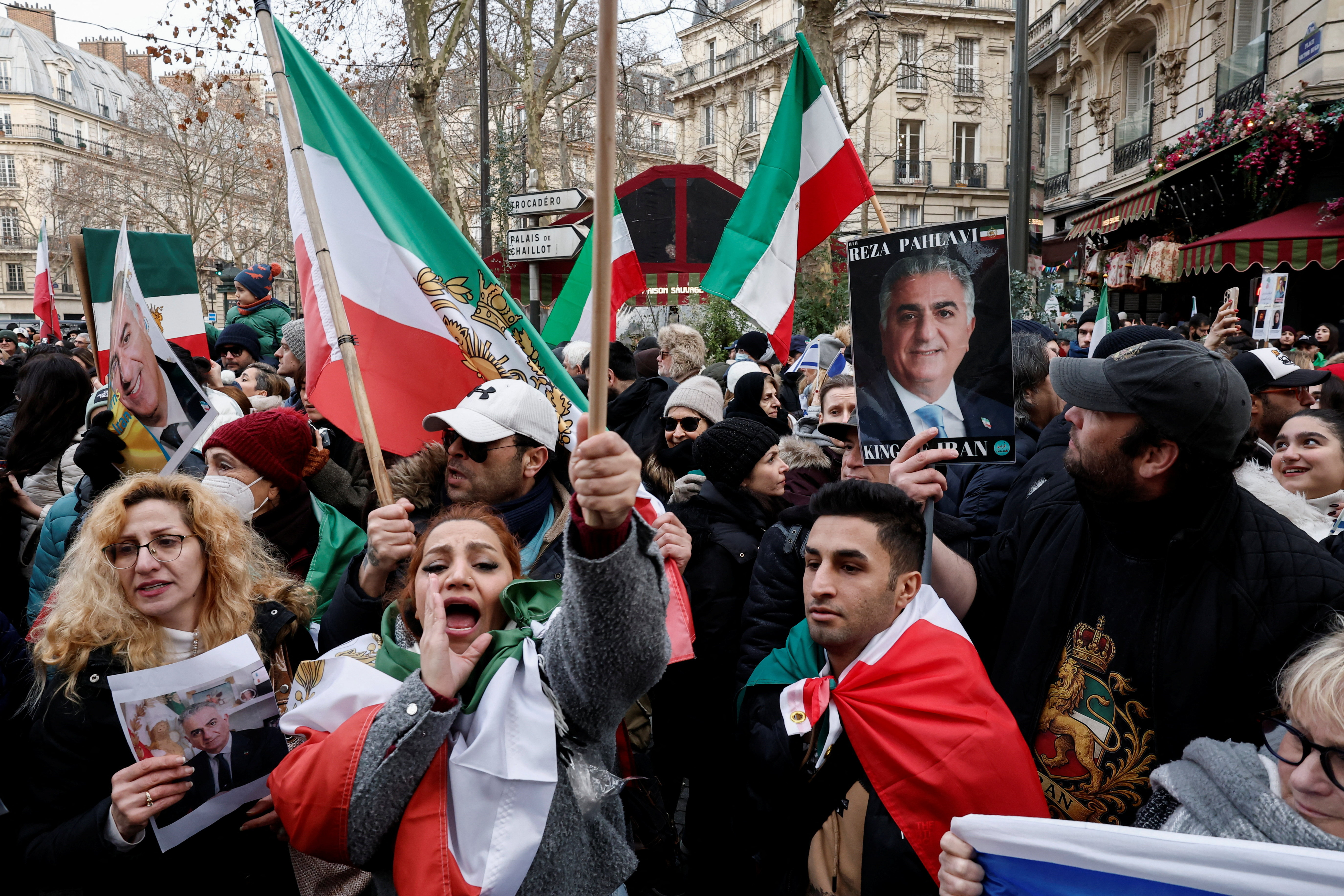 خلال الاضطرابات العنيفة على مدى الأسبوعين الماضيين أظهرت مقاطع مصورة في المدن الإيرانية بعض المحتجين وهم يهتفون تأييدا للنظام الملكي المعزول ونجل الشاه الراحل الذي شجع الاحتجاجات.