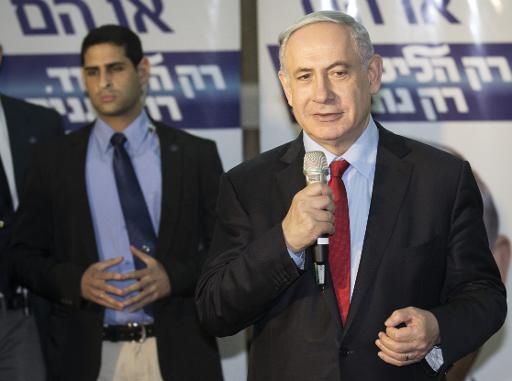رئيس الحكومة الاسرائيلي بنيامين نتانياهو خلال تجمع انتخابي في 11 اذار/مارس 2015 afp_tickers