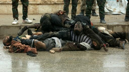 جثث يرجح انها لمقاتلين من تنظيم الدولة الاسلامية في حي غويران بمدينة الحسكة شمال شرق سوريا في 29 كانون الثاني/يناير 2022 afp_tickers