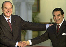 وقد اضطر شيراك الذي اجرى جولتين من المحادثات مع نظيره التونسي – على عكس باول – للتطرق إلى حالات محددة في مجال حقوق الإنسان تحت ضغط وسائل الإعلام الفرنسية التي اعتبرته متساهلا في هذا الملف.