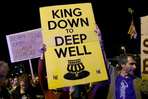 لافتات تندد بالملك خلال تظاهرة في برشلونة 4 تشرين الثاني/نوفمبر 2019 afp_tickers