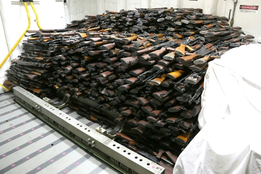 واوضحت ان الشحنة غير الشرعية تتضمن 1500 رشاش كلاشنيكوف ايه كا-47اس ومئتي قاذفة للقذائف المضادة للدروع (آر بي جي) وخمسين مدفعية رشاشة.