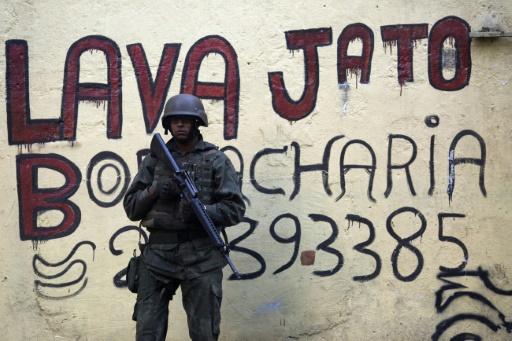 جندي برازيلي أمام رسم غرافيتي يروّج لقضية "لافا جاتو" في 26 أيلول/سبتمبر 2017 في ريو دي جانيرو في البرازيل afp_tickers
