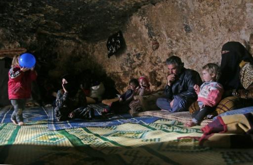يتشارك أبو محمد، النازح من غرب حلب حيث تركز قوات النظام هجومها مؤخراً، مغارة في تلتونة مع سبع عائلات أخرى.